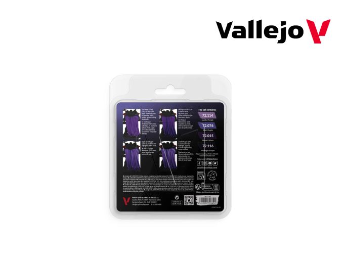 This Vallejo Game Color set features four highly saturated, matte purple shades. It includes a versatile collection with a base color, a shadow color, and two highlighting shades, allowing you to achieve rich and dynamic purple effects on your miniatures.