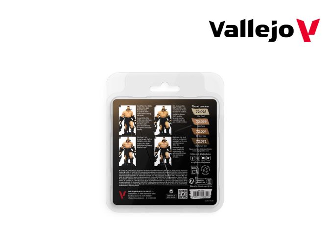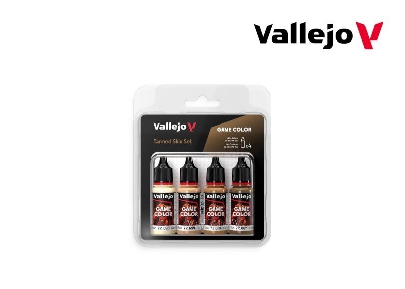 This Vallejo Game Color set features four specially chosen shades for painting tanned and weathered skin. It includes a versatile collection with a base color, a shadow color, and two highlighting shades, allowing you to create nuanced and realistic tanned or battle-hardened skin effects on your miniatures.