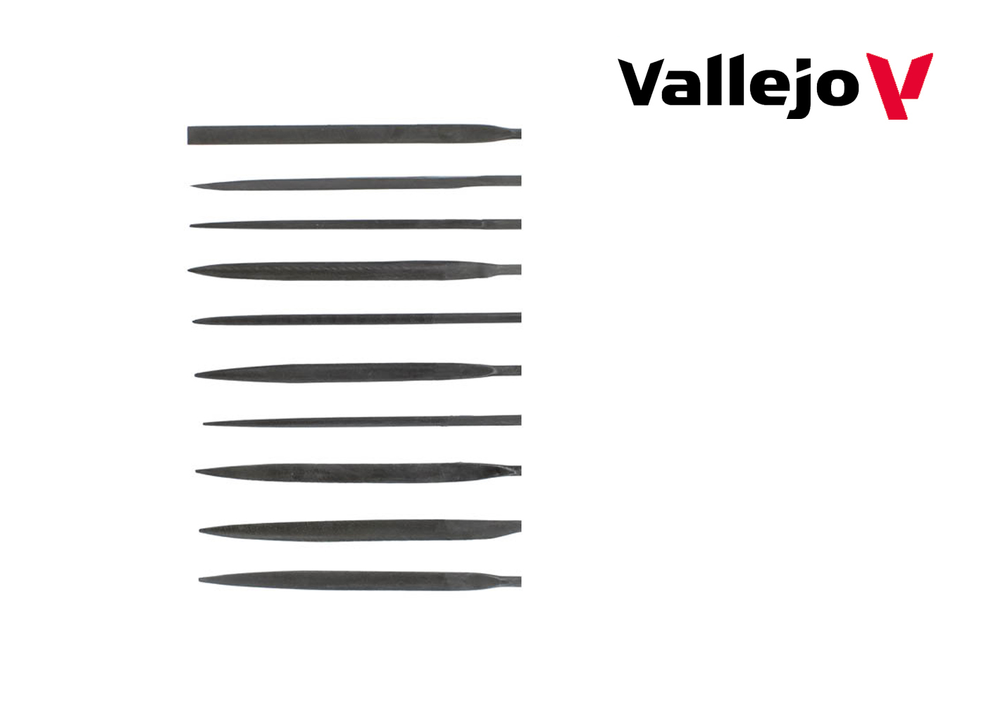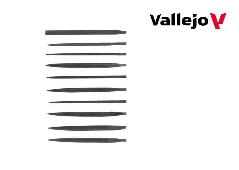 The Vallejo Needle Files Set provides ten medium-cut files, each designed for precision shaping, smoothing, and detailing in scale modelling, miniatures, and other hobby applications. Ideal for plastics, metals, and resin, these files are perfect for refining small components and achieving fine finishes on intricate parts.