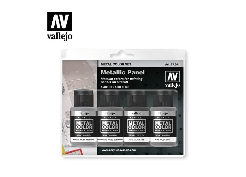 This Vallejo Metal Color set includes four metallic shades specifically chosen for painting aircraft panels. Designed to replicate realistic metallic finishes, these colours are suitable for aircraft of any type or period, from WWII fighters to modern jets.