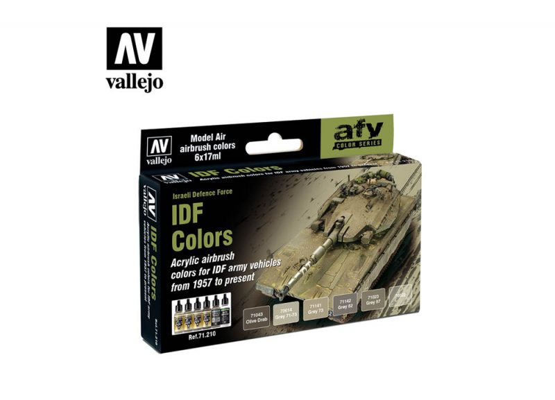 • This Vallejo AFV Color Series Set contains the colours used to airbrush army vehicles of the Israeli Defense Force from 1957 to present – 71.210