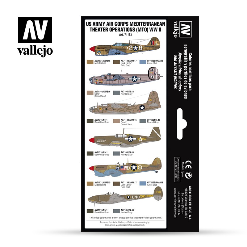 - Eight authentic camouflage colours for US Army Air Corps aircraft in the Mediterranean Theater