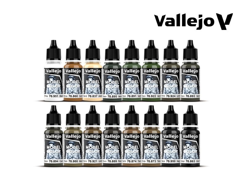 The set includes 16 Model Color acrylic colours in 18ml bottles.