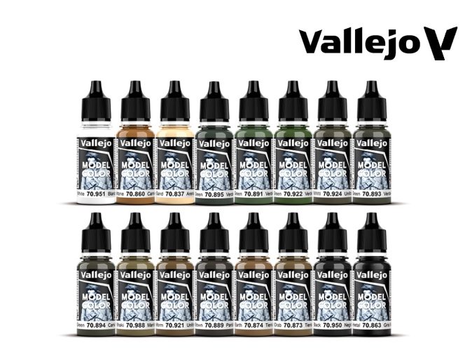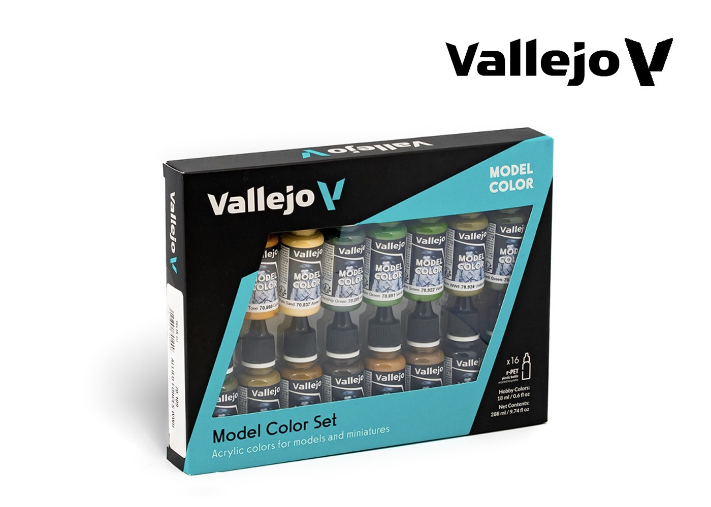The set includes 16 Model Color acrylic colours in 18ml bottles.