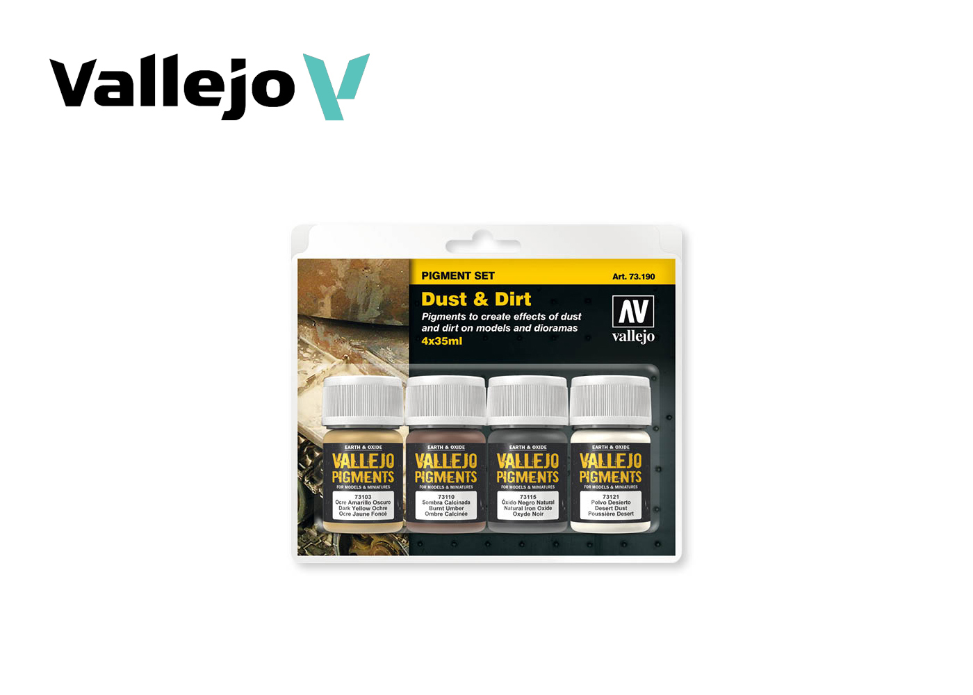 This Vallejo Pigment set includes a step by step guide by Chema Cabrero to assist in creating the effects of Dust & Dirt on models and dioramas.