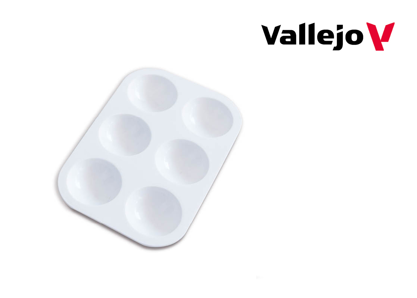 It features six round recesses, providing convenient spaces for mixing multiple colours at once.