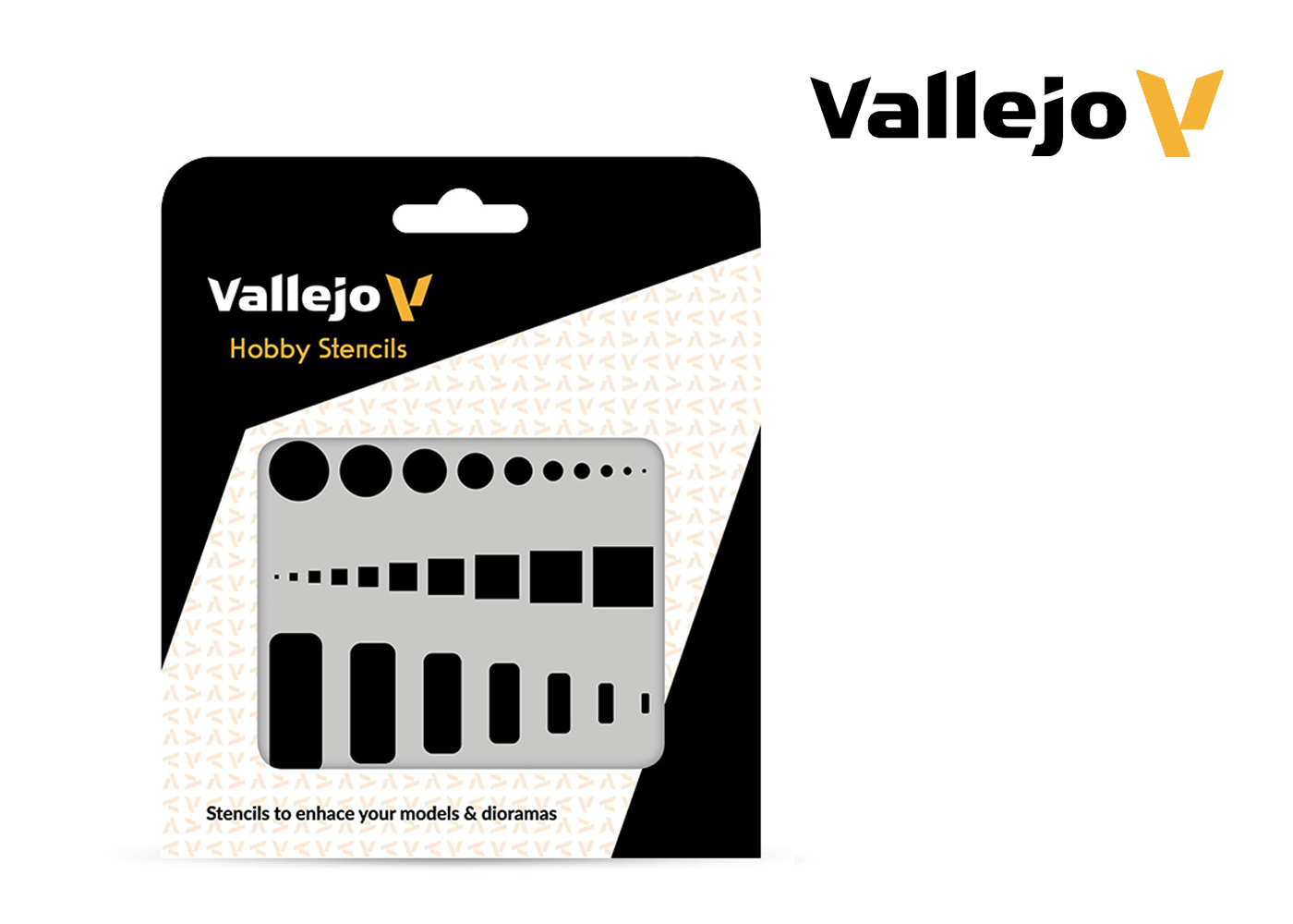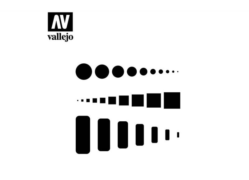 Vallejo Stencils are made from translucent, flexible material that conforms easily to flat, curved, and angled model surfaces, making them ideal for scale modeling and miniature painting.