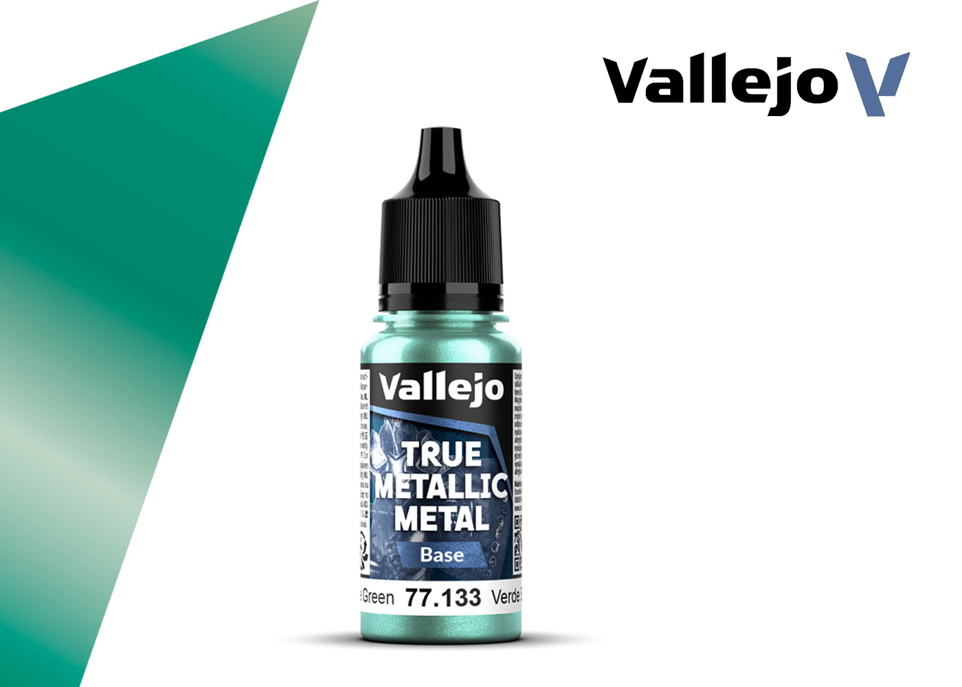 Vallejo True Metallic Metal Base paints feature a new formulation. This design uses metallic effect pigments to deliver rich, authentic metal tones with a shine appropriate for scale models.