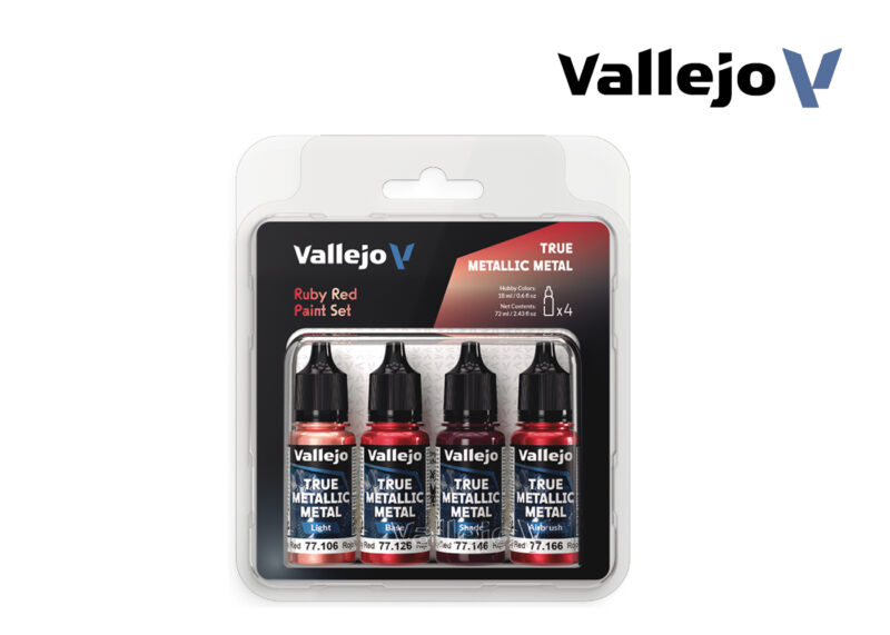 This set contains four harmonised metallic tones to create a complete and versatile red finish for miniatures and scale models. It is built around a cool, intense metallic hue.