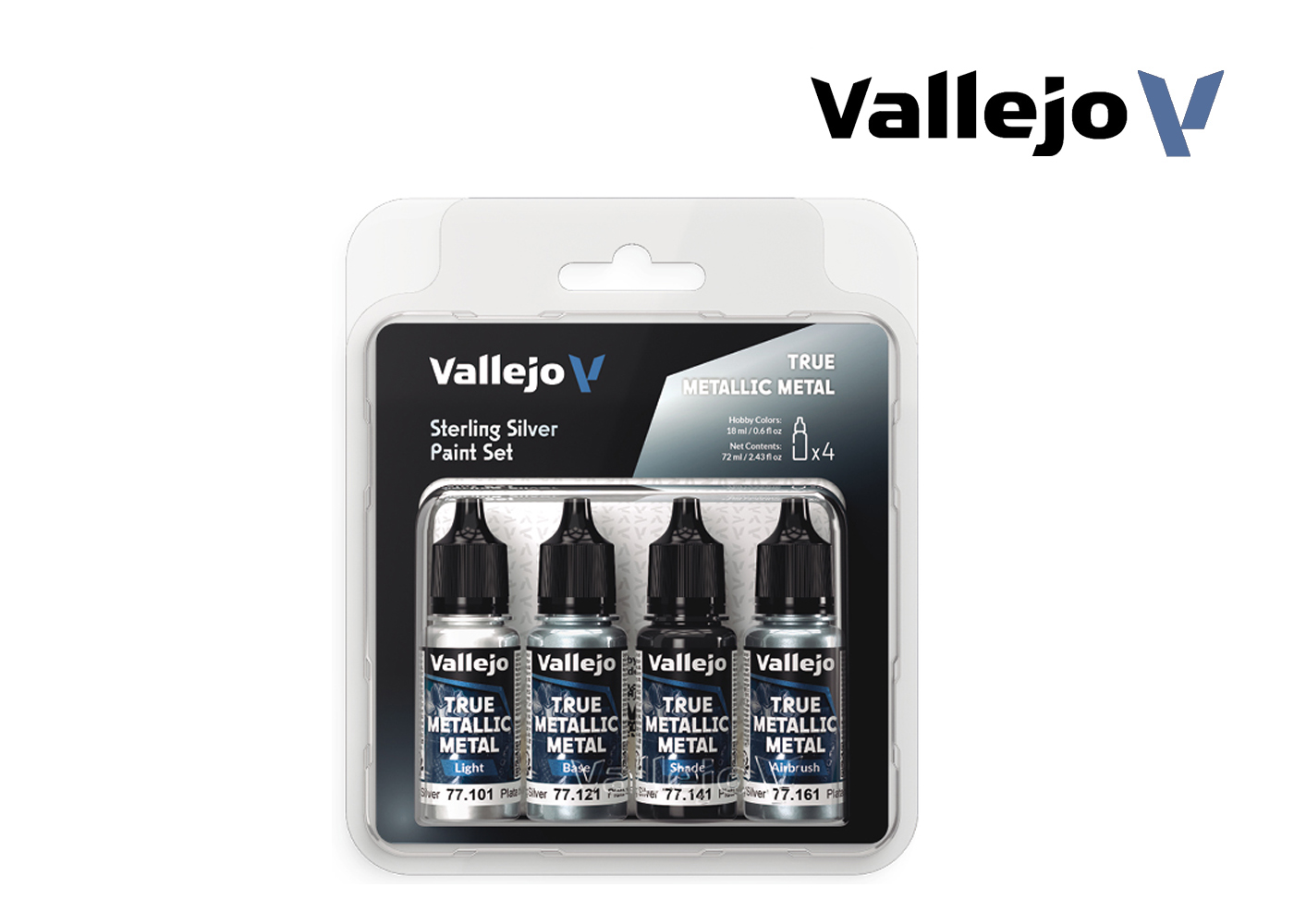 Contents – True Metallic Metal Colours (4 × 18 ml):