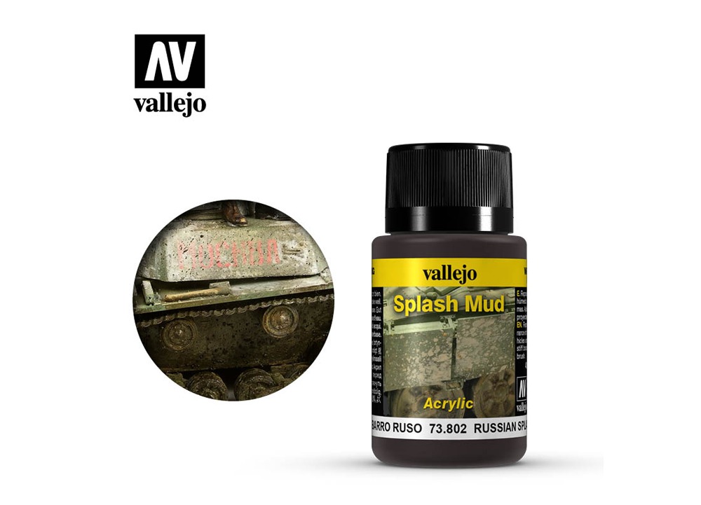 Formulated with permanent pigments and water-based acrylic resins, Russian Splash Mud dries to a realistic, textured finish. It can be applied directly, flicked, or dabbed to simulate splashes and layered with other Weathering FX products for greater variation. Tools clean easily with water and soap.