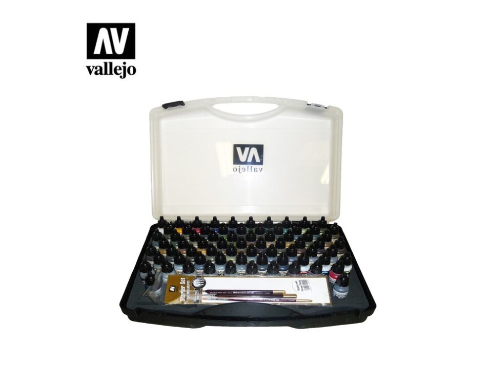 Vallejo Model Air Paint Set – Basic Colors Box Set (72 Colours + 3 Brushes + Carry Case)